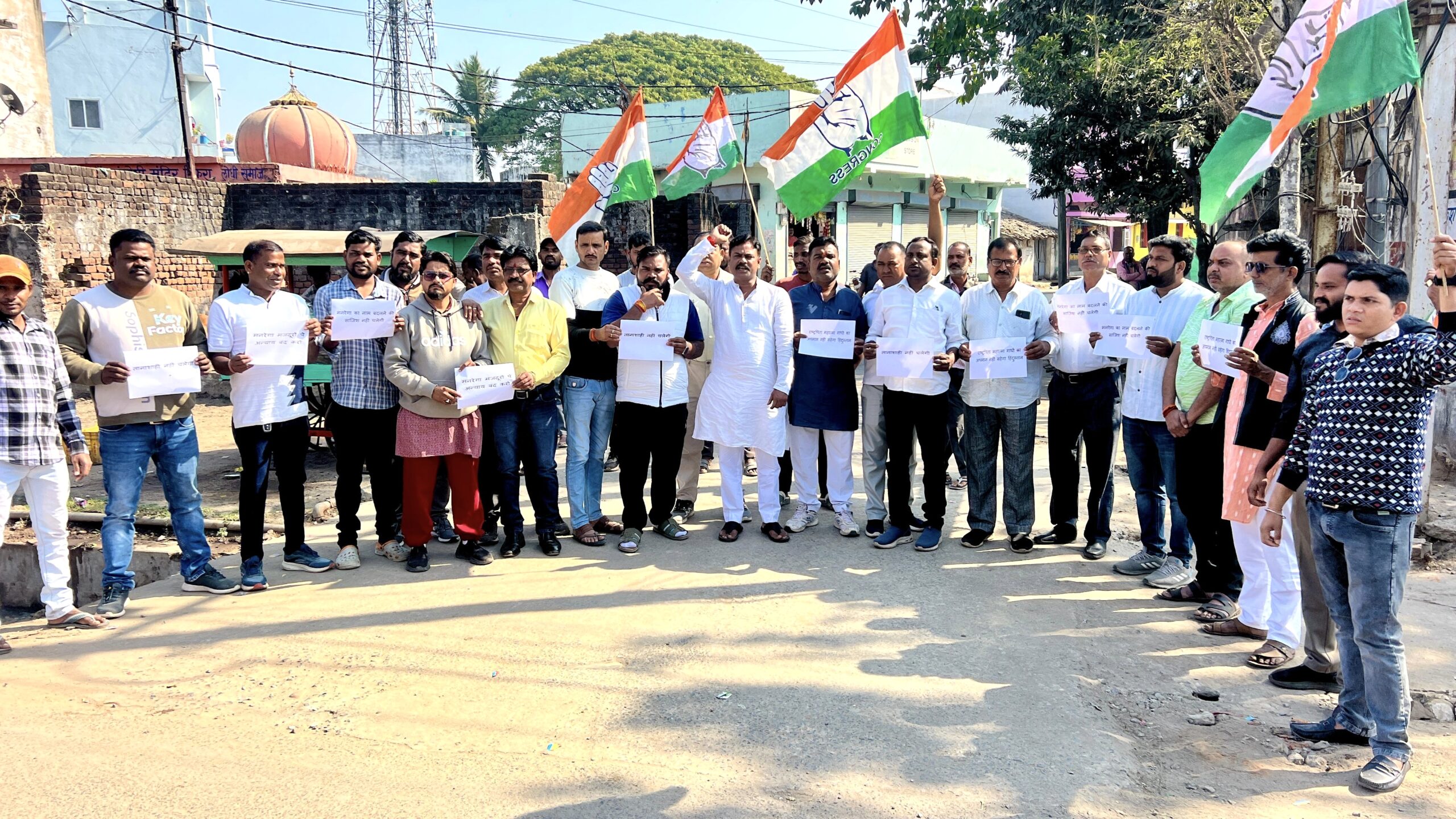 बिलासपुर। भाजपा की केंद्र सरकार द्वारा महात्मा गांधी राष्ट्रीय ग्रामीण रोजगार गारंटी योजना (मनरेगा) का नाम बदलने और मूल ढांचे में परिवर्तन करने के खिलाफ कांग्रेस ने पूरे देश में विरोध प्रदर्शन तेज कर दिए हैं। इसी कड़ी में कांग्रेस की 141वीं स्थापना दिवस पर तिफरा ब्लॉक कांग्रेस कमेटी ने जोरदार धरना-प्रदर्शन किया। कार्यकर्ताओं ने मोदी सरकार के खिलाफ नारेबाजी की और मनरेगा में किए गए बदलावों को तत्काल वापस लेने की मांग उठाई।