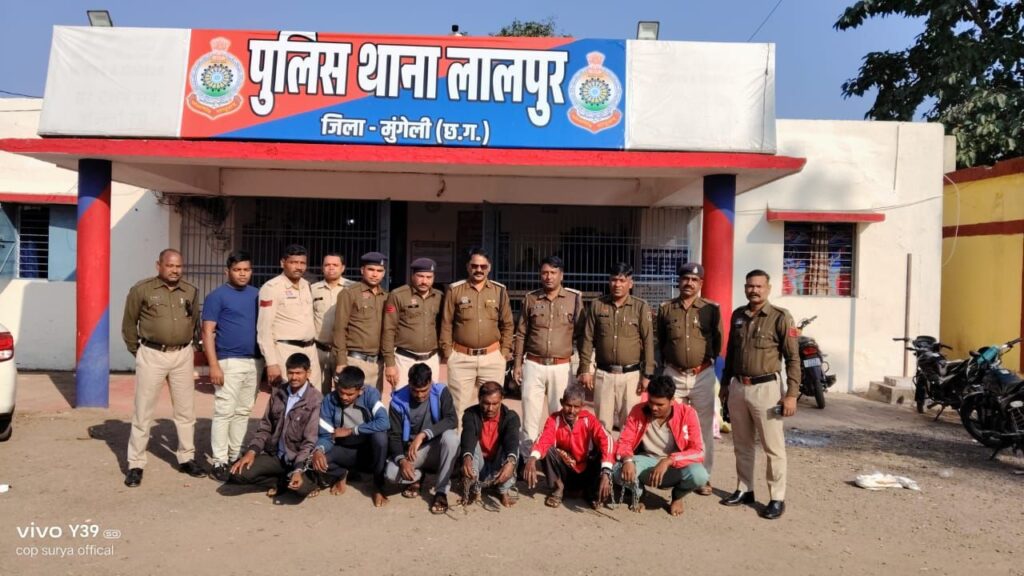 लालपुर/मुंगेली। छत्तीसगढ़ के मुंगेली जिले के थाना लालपुर क्षेत्रांतर्गत ग्राम बांधा में पुरानी जमीन रंजिश के चलते हुई क्रूर हत्या के मामले में पुलिस ने कमाल कर दिखाया। पुलिस अधीक्षक भोजराम पटेल (भा.पु.से.) के निर्देश पर गठित विशेष टीम ने घटना के महज 72 घंटों के अंदर 6 आरोपियों और एक कानून से संघर्षरत बालक को गिरफ्तार कर लिया। मामला इतना संवेदनशील था कि आरोपी लाठी-डंडों से हमला कर रामकुमार कश्यप की हत्या करने के बाद ट्रैक्टर के पहिए तले कुचलते हुए भागे थे।