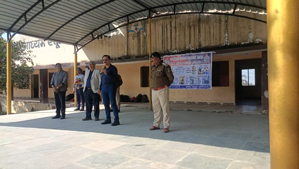 मुंगेली। जिला मुंगेली के स्वामी आत्मानंद हायर सेकेंडरी स्कूल सरगांव में राष्ट्रीय सड़क सुरक्षा माह 2026 के तहत जागरूकता कार्यक्रम आयोजित किया गया। संयुक्त आयुक्त एवं अध्यक्ष अंतर्विभागीय लीड एजेंसी सड़क सुरक्षा छ.ग. श्री संजय शर्मा (सहायक पुलिस महानिरीक्षक यातायात) ने स्कूली बच्चों को यातायात नियमों के प्रति जागरूक किया।