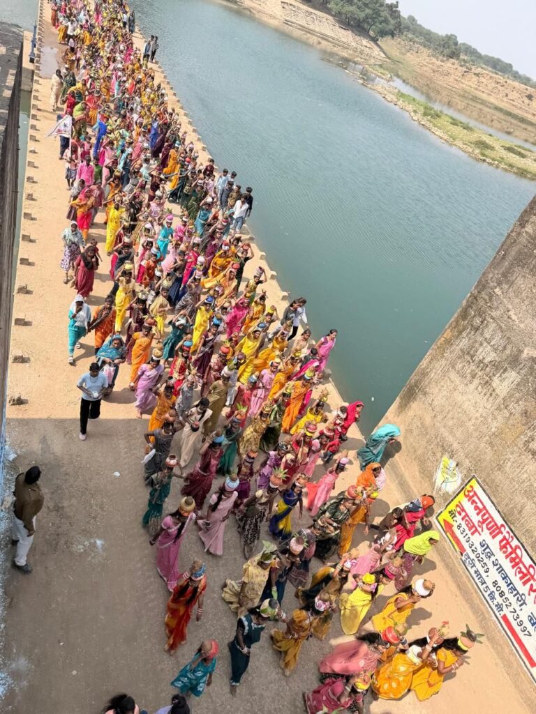 सरगांव, 14 फरवरी 2026: माण्डूक्य ऋषि की तपःस्थली श्री हरिहर क्षेत्र केदार द्वीप मदकू में महाशिवरात्रि के पावन अवसर पर त्रिदिवसीय शिव आराधना महोत्सव (14-16 फरवरी) का शुभारंभ आज कलशयात्रा के साथ भव्य रूप से हुआ। प्रातः महामाया मंदिर मदकू से कर्मा नर्तक दल एवं बाजे-गाजे के साथ कलश यात्रा निकाली गई, जिसमें मदकू, ठेलकी, बासिन, बड़ियाडीह, देवाकर, लमती, किरना, मदवानी, दरूवनकापा, बारगांव आदि 20 गांवों की बालिकाओं एवं महिलाओं ने हिस्सा लिया।